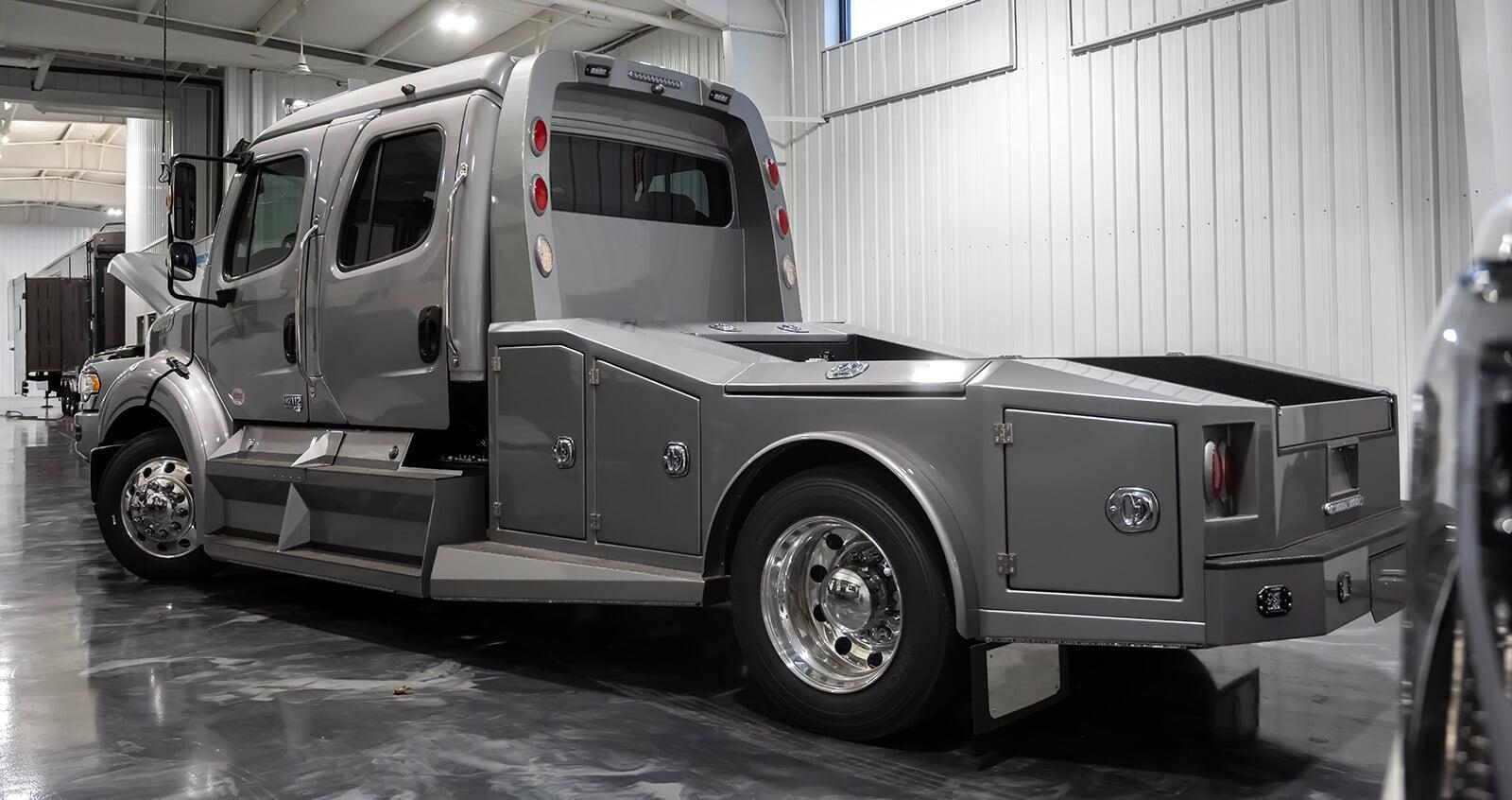 The 2026 Freightliner M2 112 RV Hauler takes luxury, performance, and versatility to the next level. Equipped with a 84″ Luxe Trucks custom aluminum hauler bed, this hauler is designed for effortless towing and ultimate reliability. Key features include:
