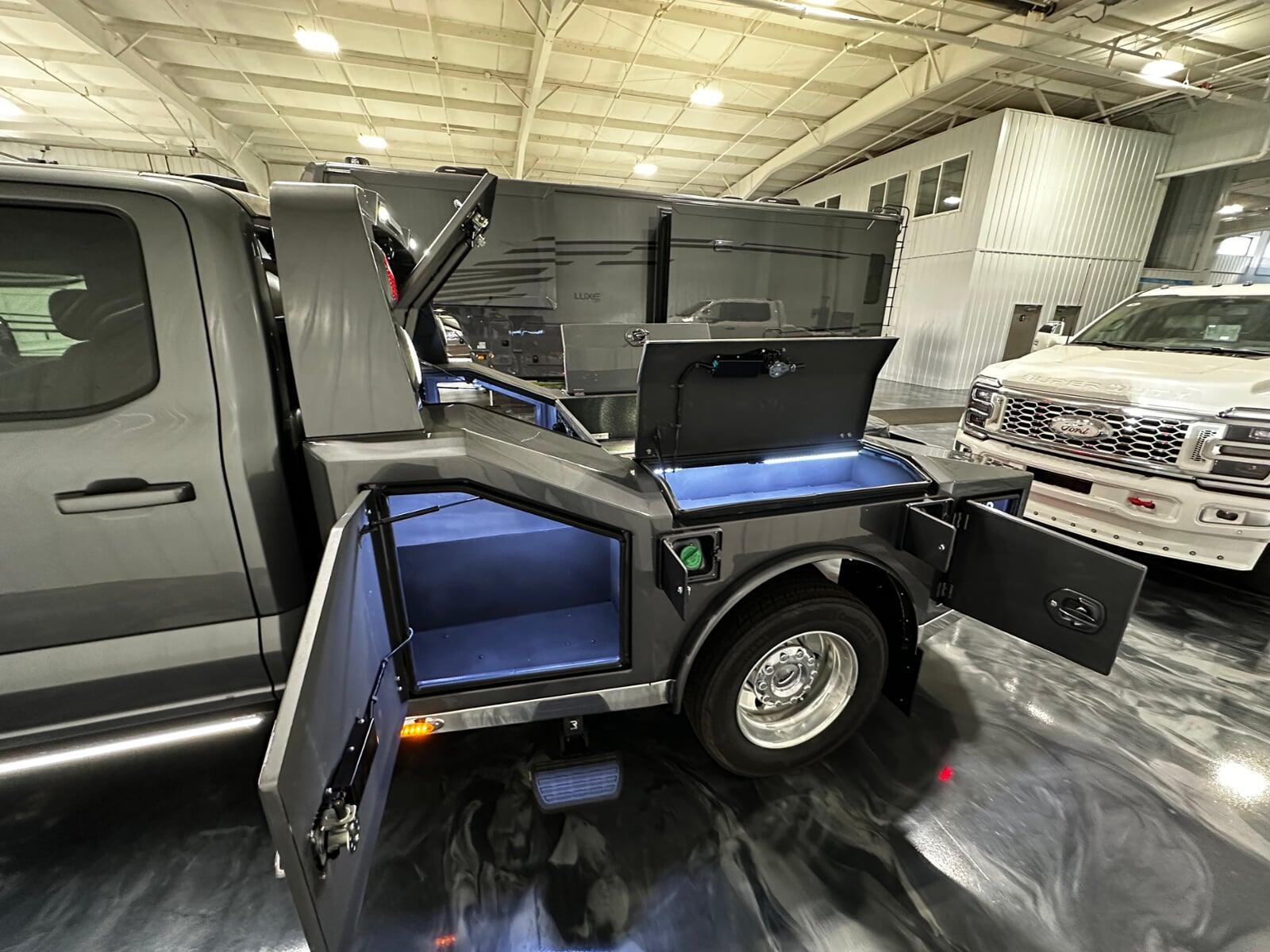 Our Ford F-550 hauler is designed for 5th wheel and gooseneck RVs and trailers. It features a lower-…